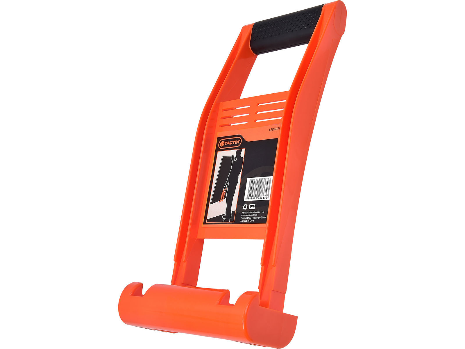 Bærehåndtak som gjør det enkelt å transportere gipsplater, bygningsplater og andre flate materialer. Med en lengde på 36 cm gir den en god rekkevidde. Sklisikkert og mykt håndtak i gummi.