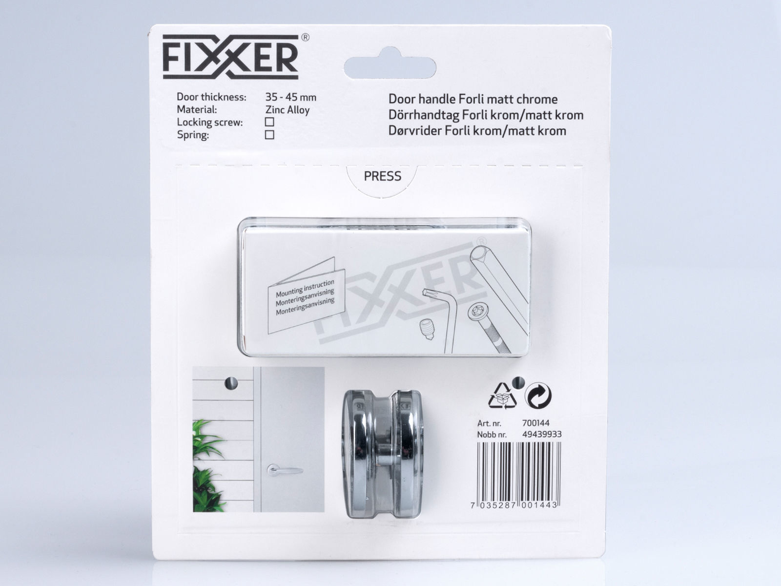 Dørvrider av zink/alloy for innerdører. Krom matt utførelse. Passer til dørtykkelse 35-45 mm. Leveres komplett med skilt type R1 med skjult skruing på en side, samt skruer og tilbehør. Vriderskiltene i denne PREMIUM-serien har den unike egenskapen at de sitter ekstra godt på døren.