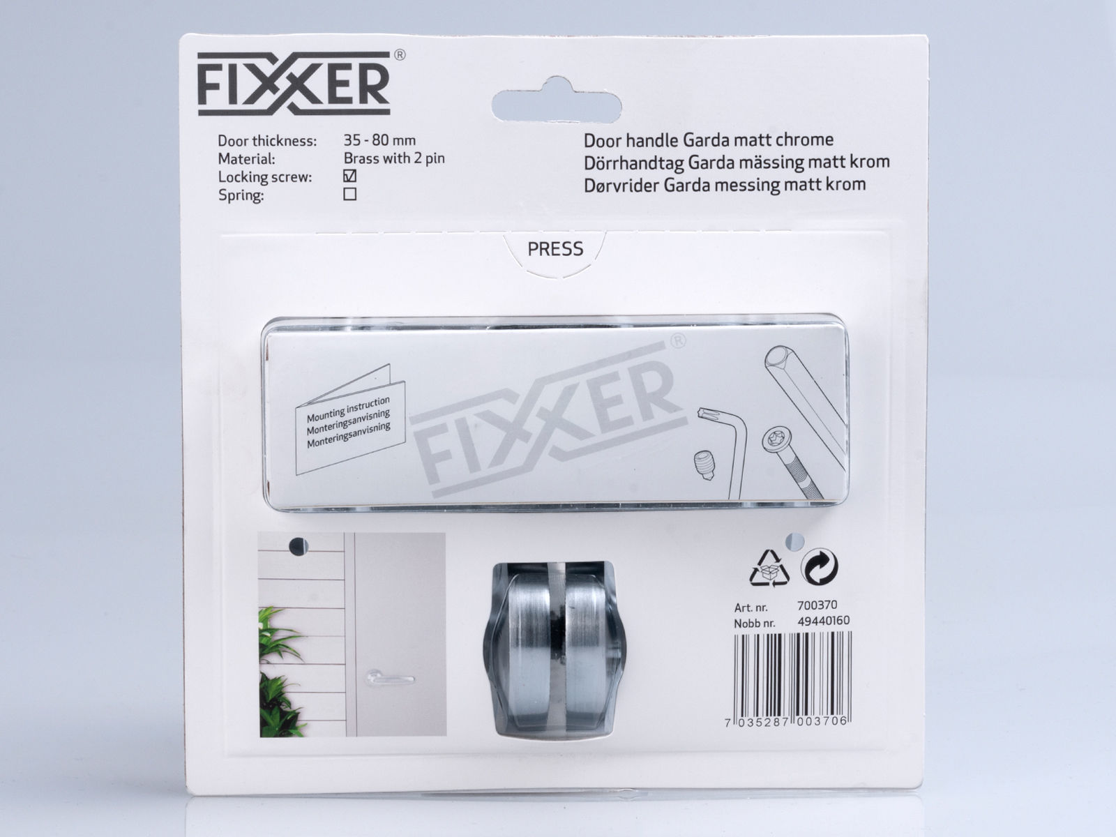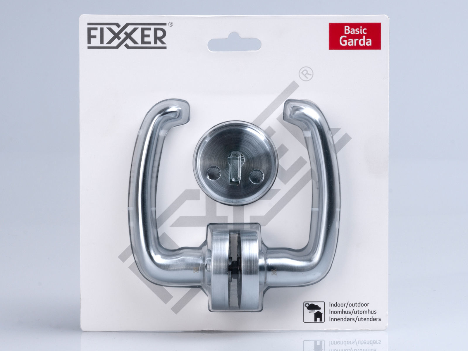 Dørvrider av messing for bod/branndører og ytterdører. Krom matt utførelse. Passer til dørtykkelse 35-80 mm. Leveres komplett med nøkkelskilt type R1 samt skruer og tilbehør. En del av BASIC-serien.