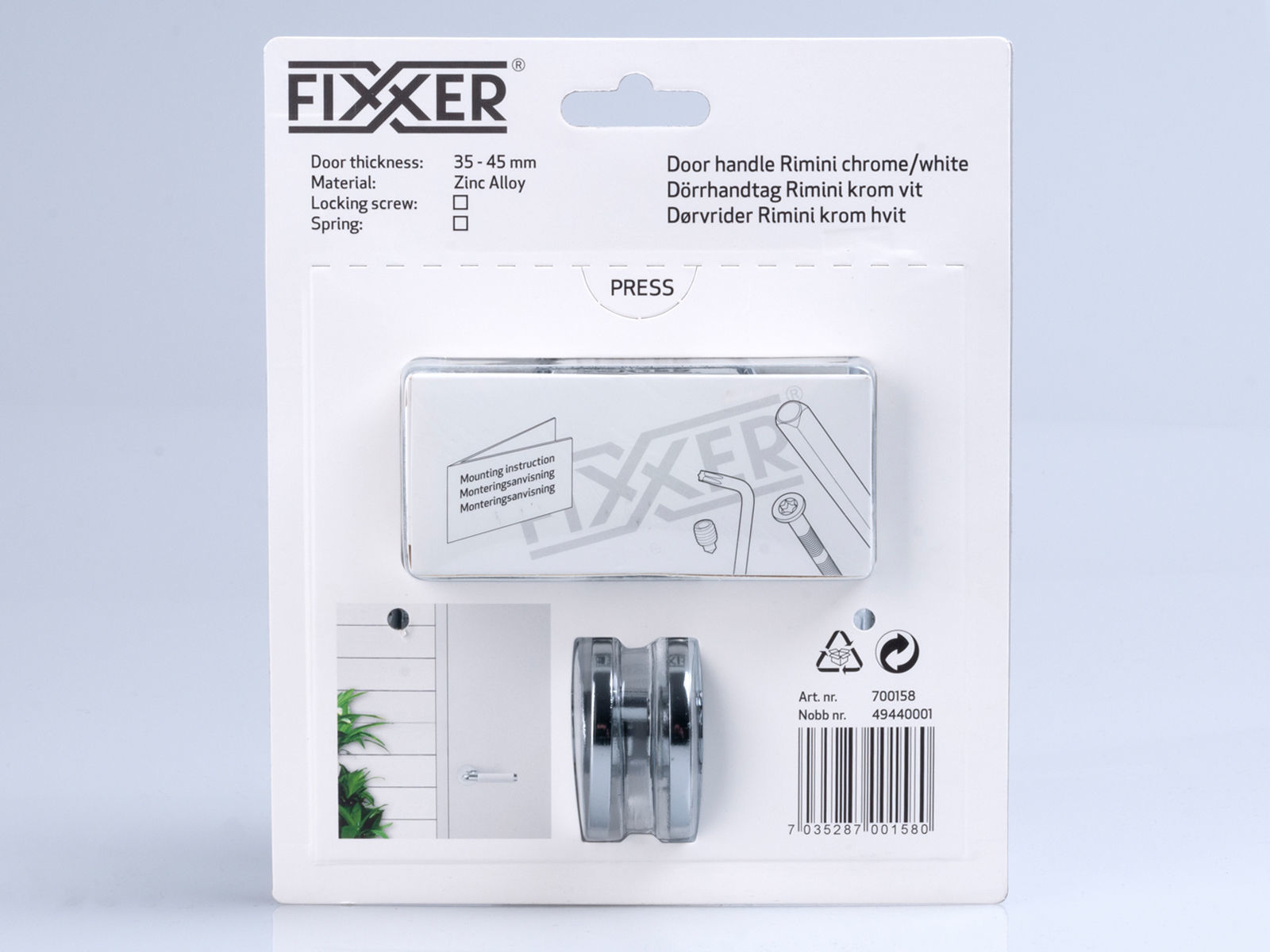 Dørvrider av zink/alloy for innerdører. Utført i krom med hvitt grep. Passer til dørtykkelse 35-45 mm. Leveres komplett med skilt type R1 med skjult skruing på en side, samt skruer og tilbehør. Vriderskiltene i denne PREMIUM-serien har den unike egenskapen at de sitter ekstra godt på døren.