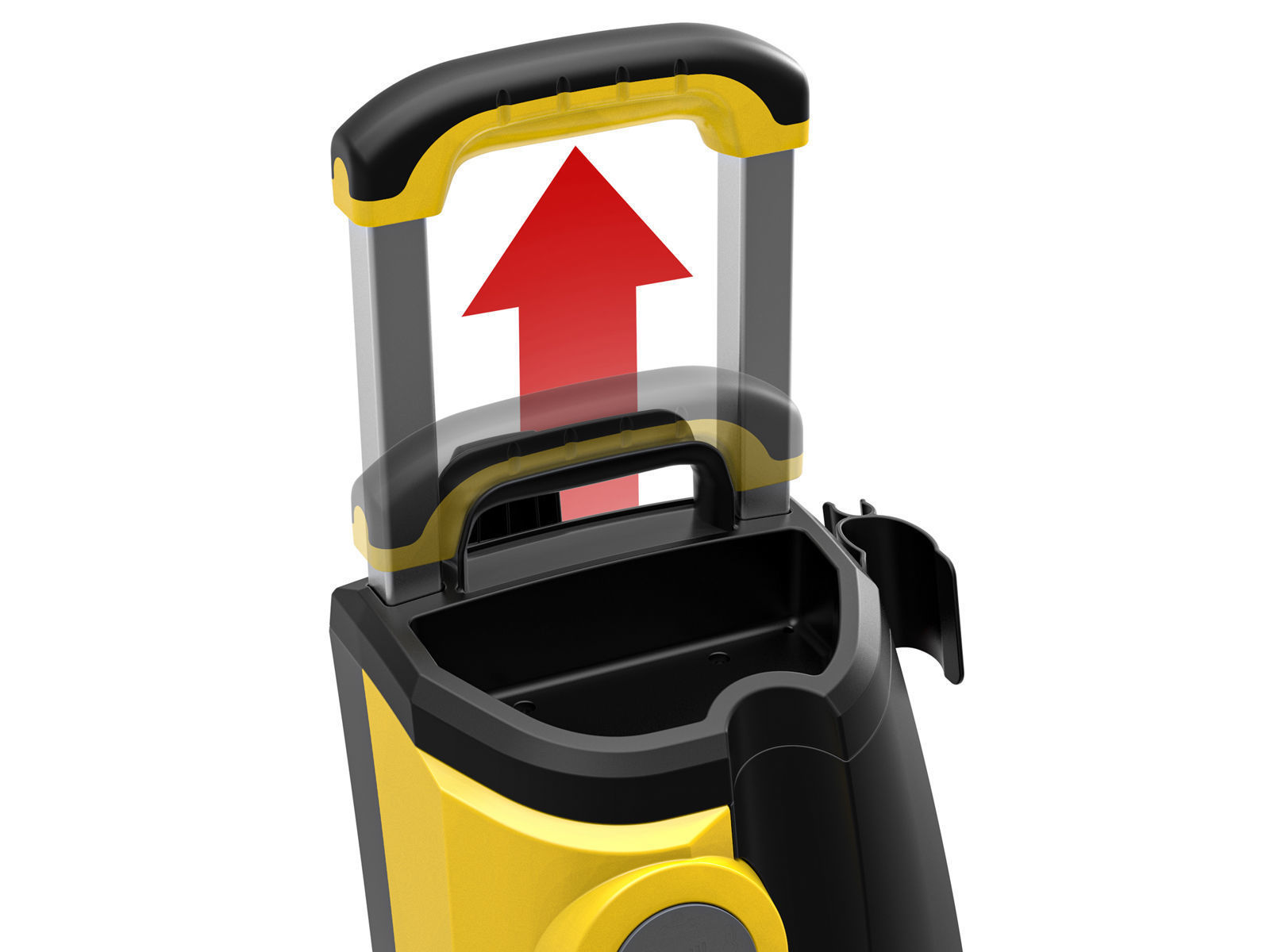 Mobil og hendig høytrykksspyler med høy ytelse på 140 bar og som leverer 7,5 l/min. Nedfellbart teleskophåndtak og praktisk bærehåndtak i front gjør det enkelt å transportere spyleren. Store hjul med gummibelegg sørger for at spyleren står stødig på alle underlag og gjør samtidig at den er enkel å flytte på. Pumpen i denne modellen har tre stempler, pumpehode av aluminium og har innebygd omløpsventil. Den har roterende av/på-bryter, samt automatisk start-/stopp-system som styres fra pistolgrepet. Høytrykkslangen kobles raskt og enkelt til pistol og høytrykksspyler med hurtigkoblinger. Lansen er utstyrt med hurtigkobling, noe som gjør bytte mellom det ulike tilbehørene raskt og enkelt. Utstyr og tilbehør som pistolgrep, lanse, dyser og såpebeholder har egne oppbevaringsplasser på høytrykksspyleren. Den er også utstyrt med en bred krok på baksiden hvor du kan henge både ledningen og høytrykksslangen når høytrykksspyleren ikke er i bruk. Den leveres med høytrykksslange på 6 meter, pistolgrep med låseknapp, justerbar såpebeholder som festes til lansen, høytrykksdyse med Variojet, dyse med justerbar viftestråle, turbodyse og vannfilter for vanninntak.