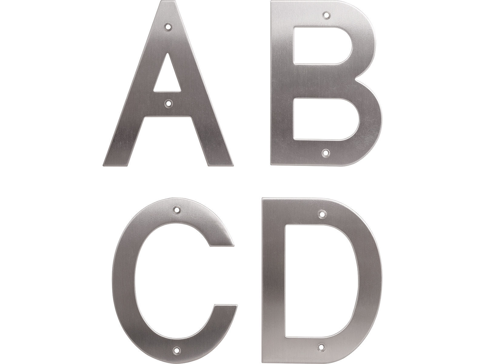 Dekorative husbokstaver i rustfritt stål A2/304. Leveres med matchende skruer, samt avstandshylser.