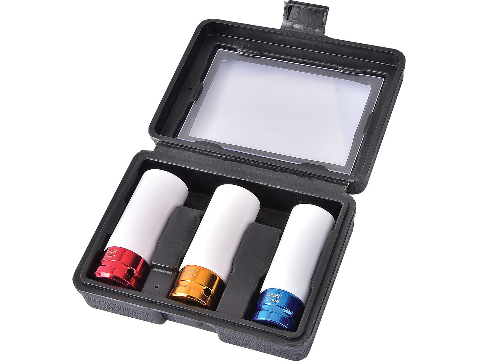 Med utvendig og innvendig plastlag, slik at man ikke skader felgen eller mutterhodet. Produsert i solid krom molybden-stål, og leveres i hendig plastetui.
