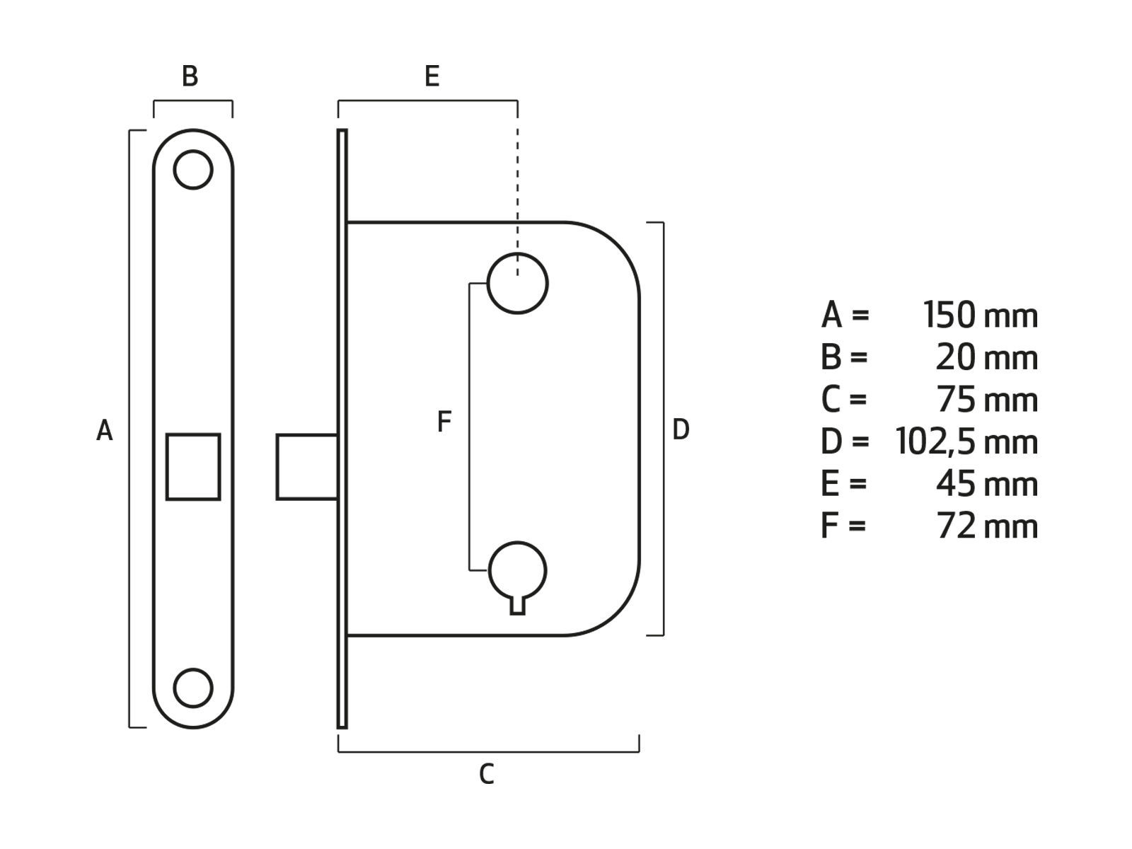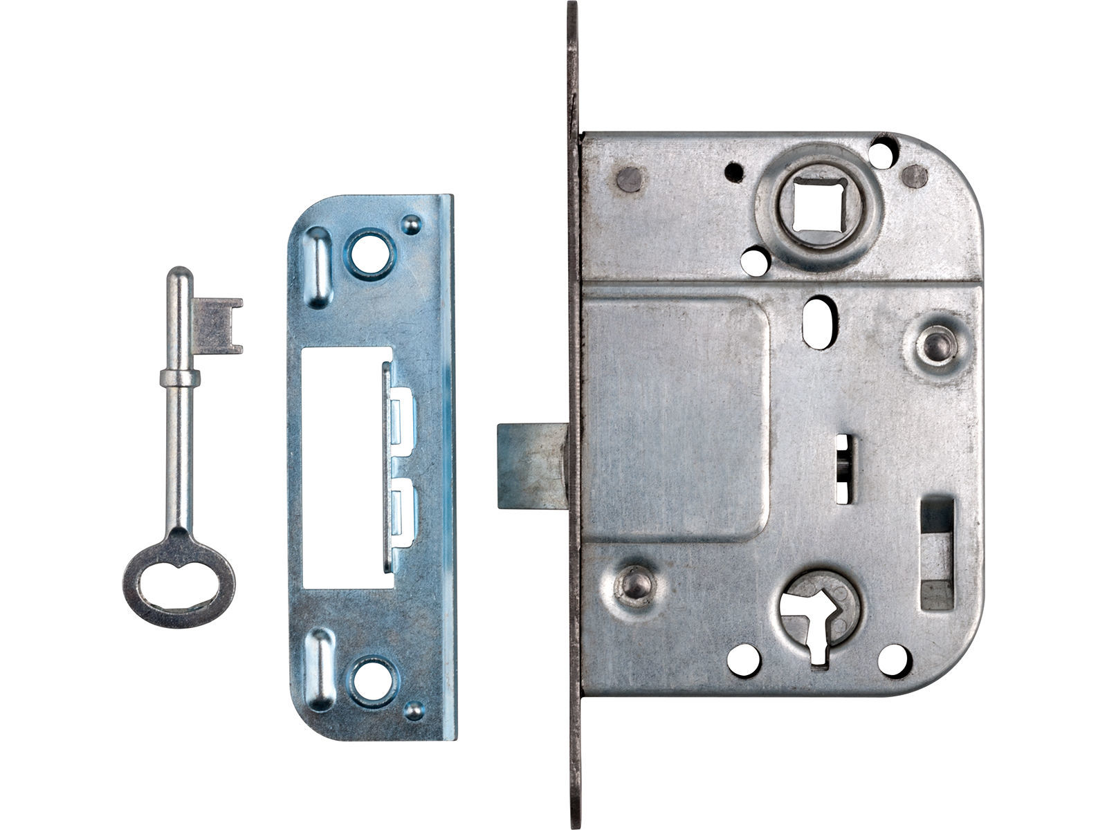 Låskasse for innvendig lettdører som betjener vriderreilen med nøkkel. Elforsinket utførelse. Slagretning endres ved å trekke ut vriderfallen og vri den 180 grader. Leveres med nøkkel nr 5 og sluttstykke. WC-garnityr kan også benyttes på denne låskassen.