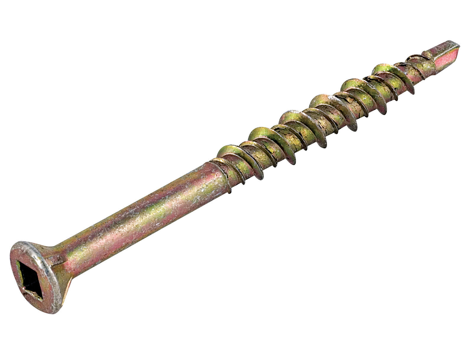 Skrue beregnet for montering av lister og tregulv. Produsert av herdet stål med gulkromatisert overflatebehandling/hvitt hodet.. Rillespor under hodet sørger for at skruen forsenkes godt i underlaget.