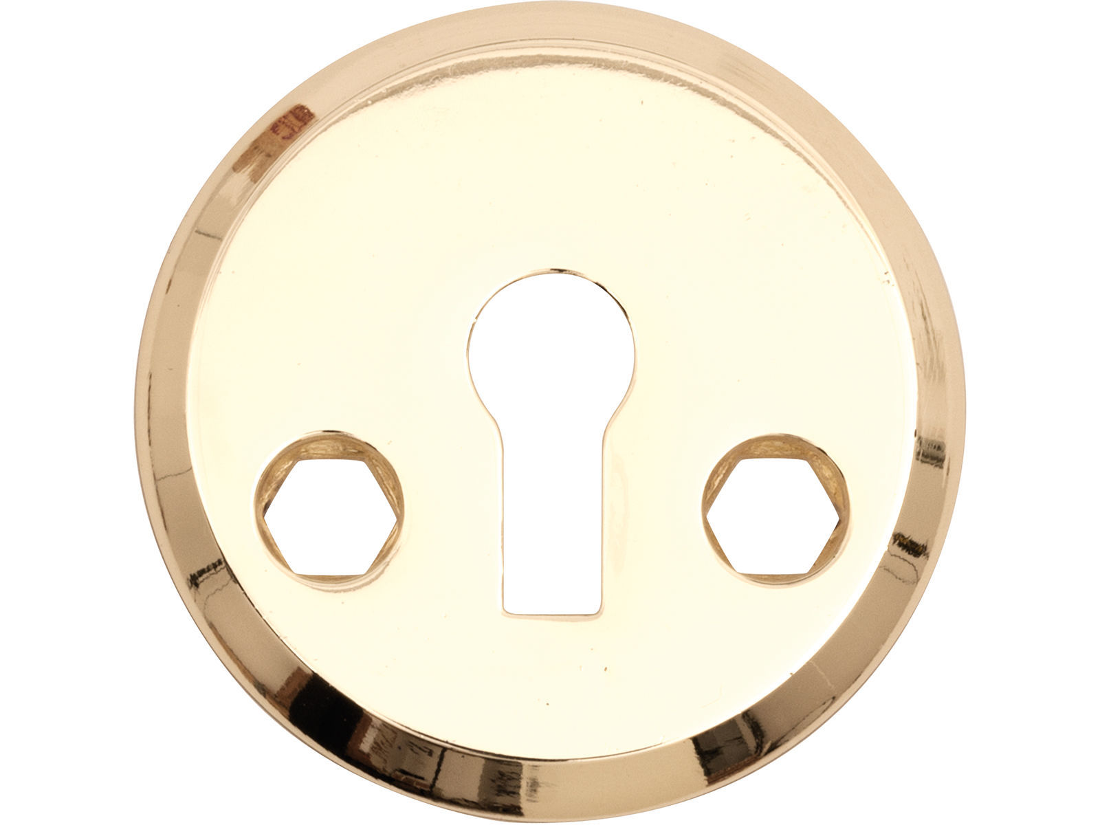 Nøkkelskilt av zink/alloy for innerdører. Polert messing utførelse. Passer til dørtykkelse 35-45 mm. Komplett med skruer og tilbehør. En del av BASIC-serien.