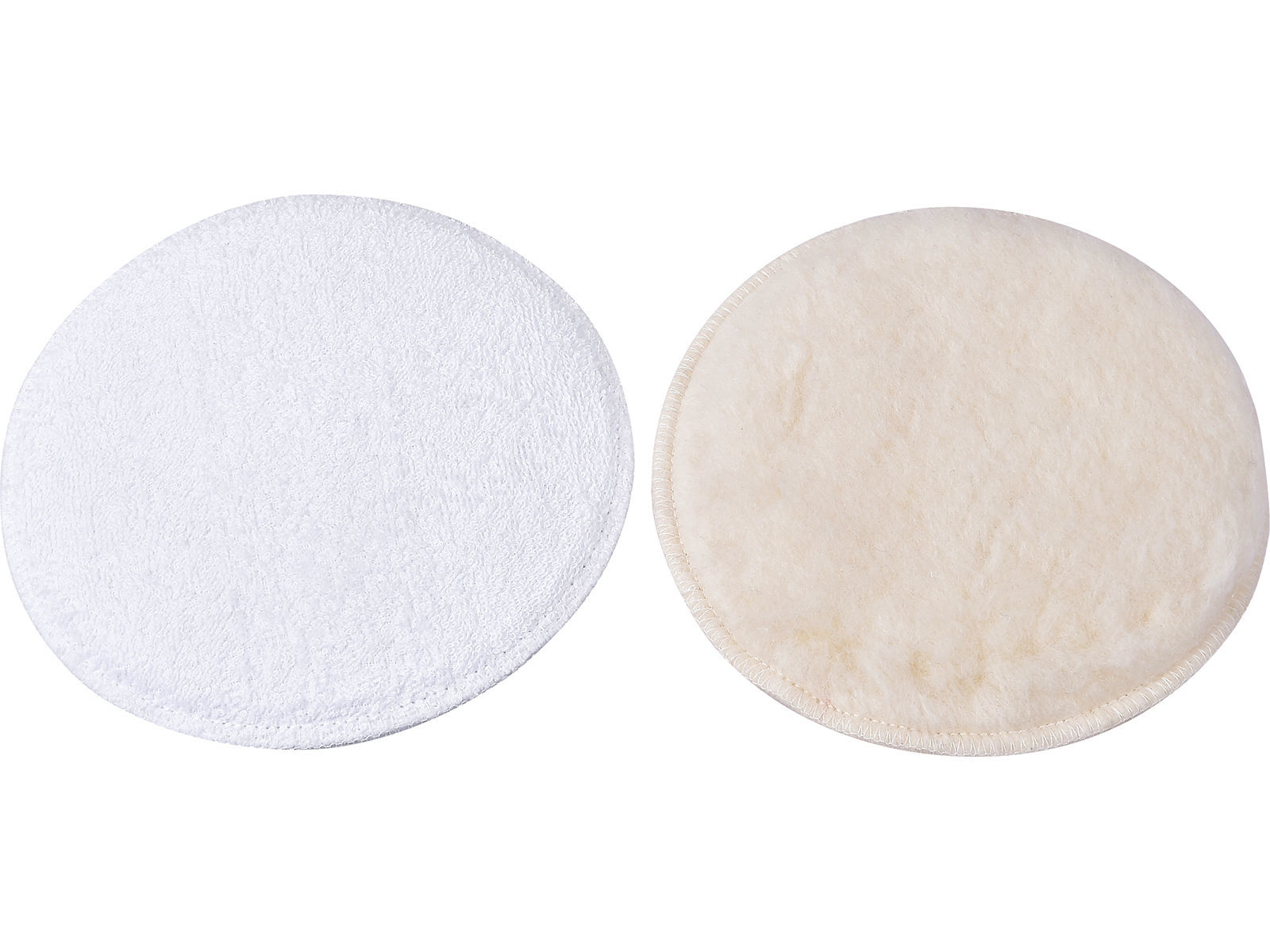 Lammeull og bomull. Borrelås-feste. For fin-polering.