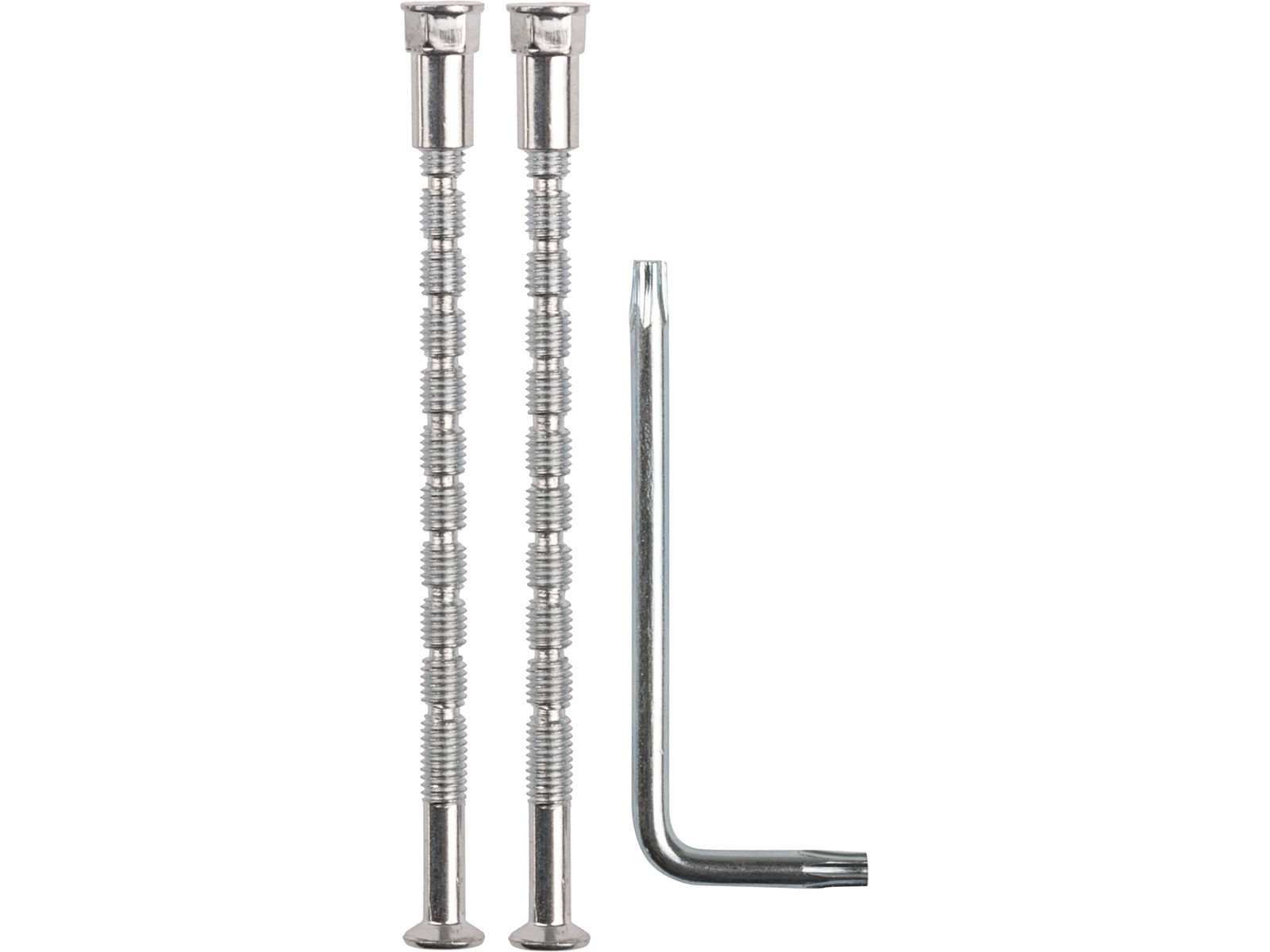 Skiltskruer i krom matt utførelse. Leveres med 5x90 mm kappeskruer og Torx 20 L-nøkkel.
