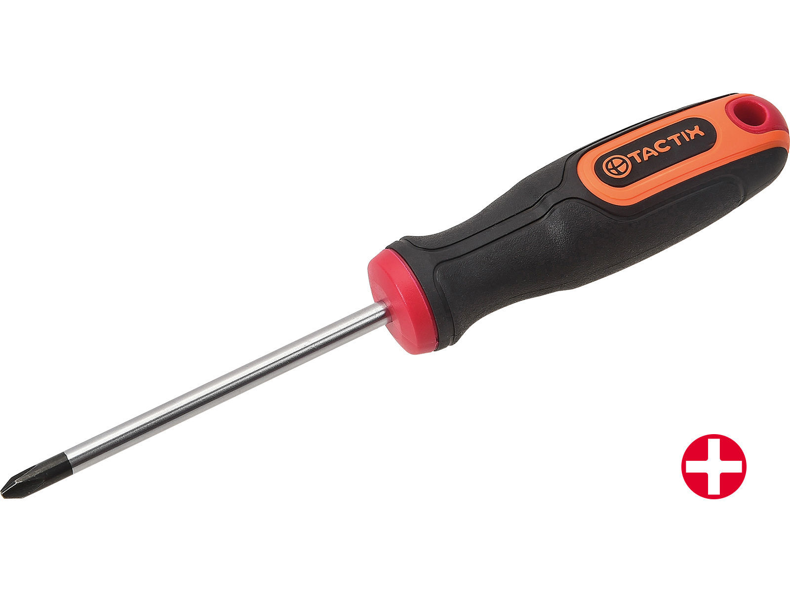 Klinge av S2 kvalitetsstål med magnetisert spiss. Ergonomisk og gripevennlig grep.