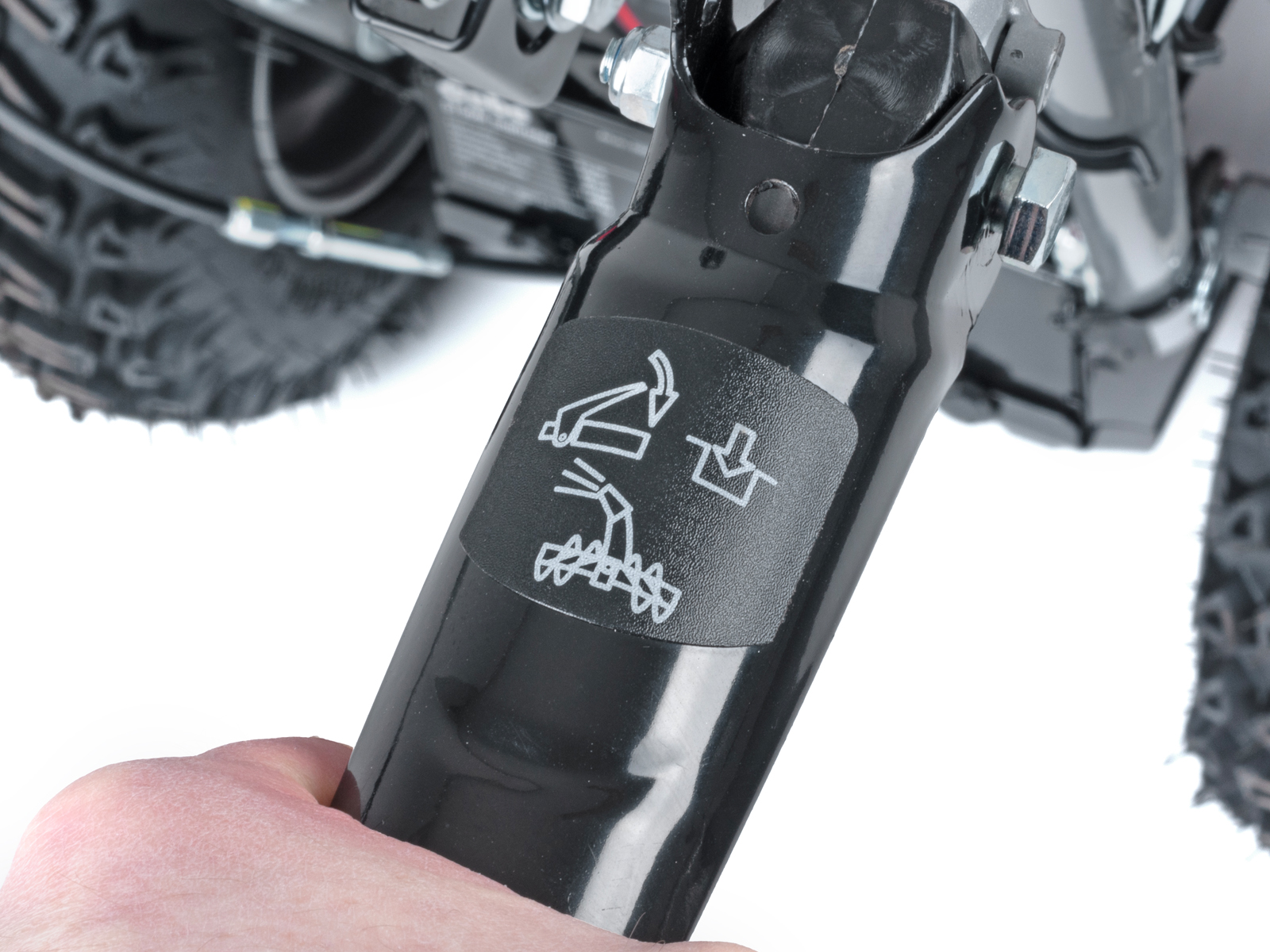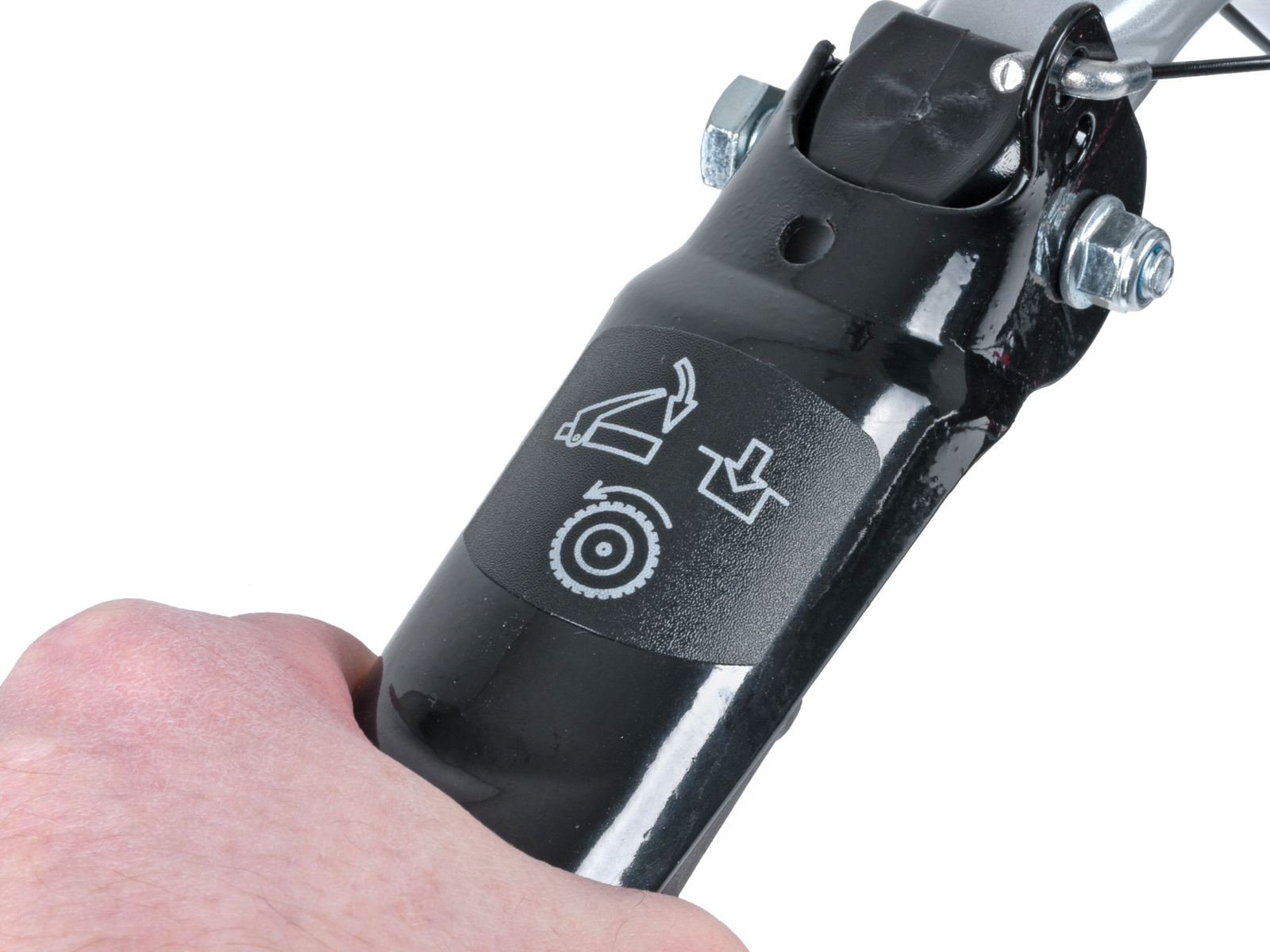 Snøfreseren er enkel å betjene og manøvrere, denne modellen er utstyrt med store luftgummihjul (13") og kraftige, utskiftbare glideplater i metall.