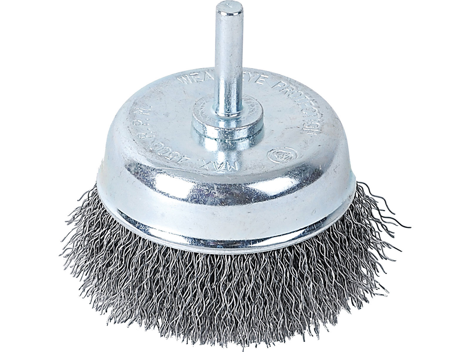 Stålbørste med 0,3mm tykk stål tråd og 6mm tapp. For bruk på bormaskin.