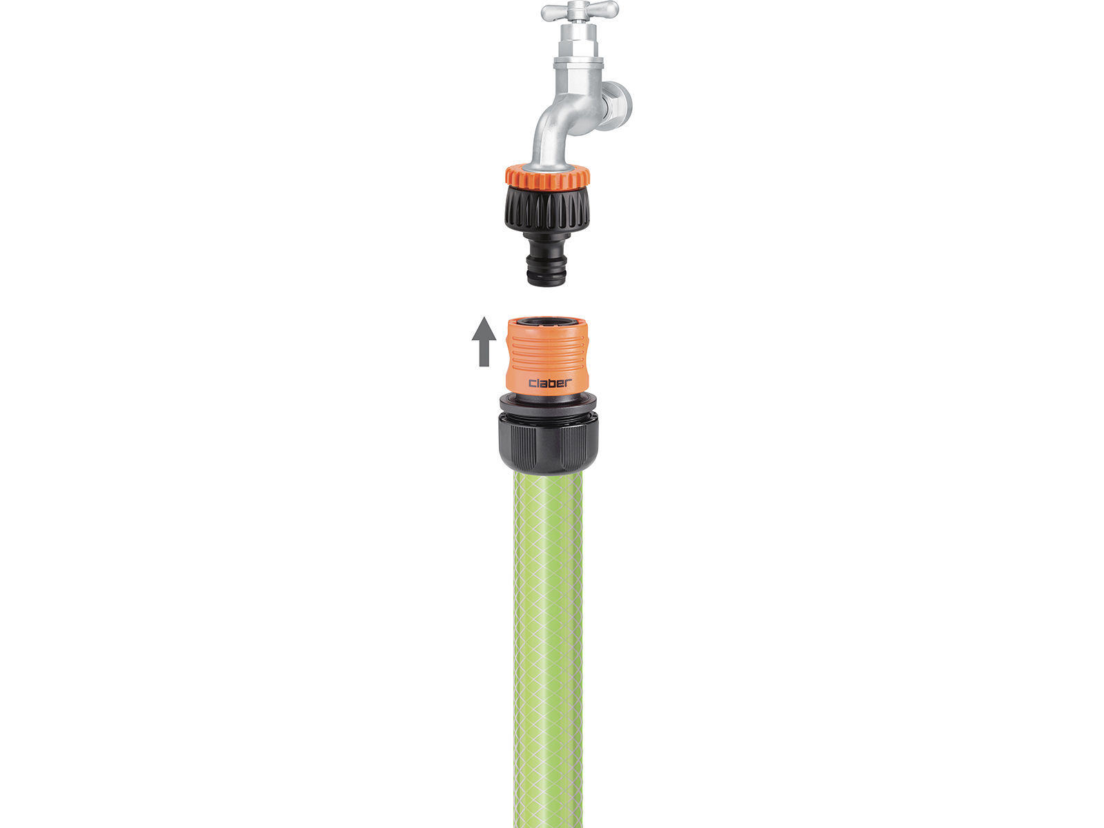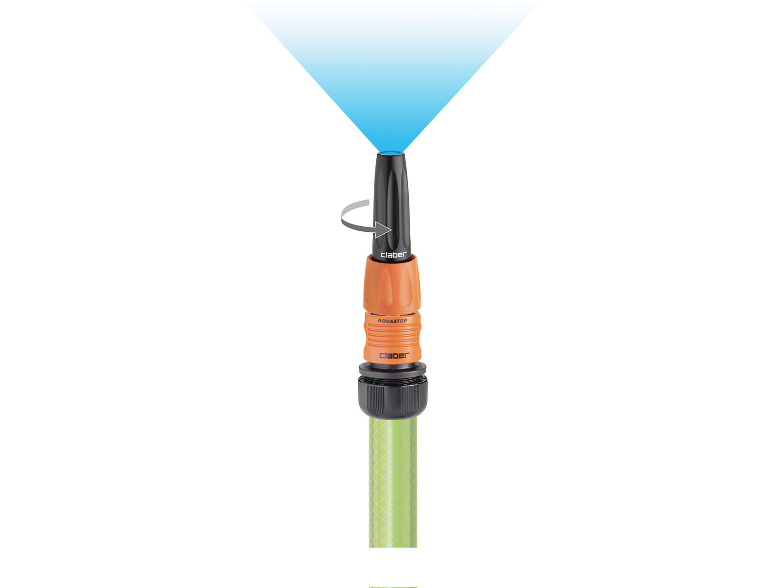 Startsett med alt du trenger for å vanne: det eneste som mangler er slangen! Inkluderer et kompakt og praktisk justerbart strålerør, som lar deg velge fra stråle til viftespray, en 3/4"-1/2" krankobling,  og to 3/4" hurtigkoblinger, en med vannstopp og en uten.