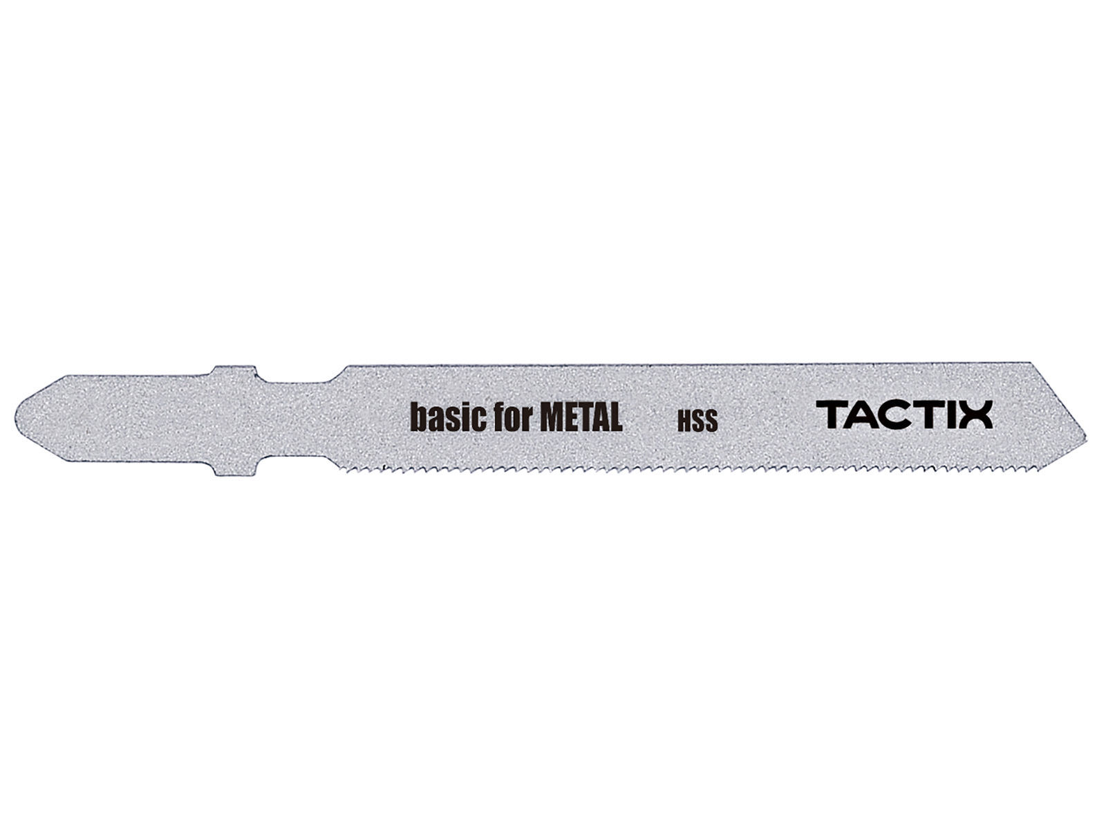 Basic for Metal stikksagblad lager rette kutt i metall. Det har valsede bølgetenner som er perfekte for kutt uten spesielle krav. Bladmateriale av fullherdet høyhastighetsstål av høy kvalitet er egnet for kutting av standard harde, ikke-perforerte metallplater. Bladets svært fine tannavstand (0,7 mm) kutter svært tynne massive metallplater med en tykkelse på 0,5-1,5 mm. T-feste.
