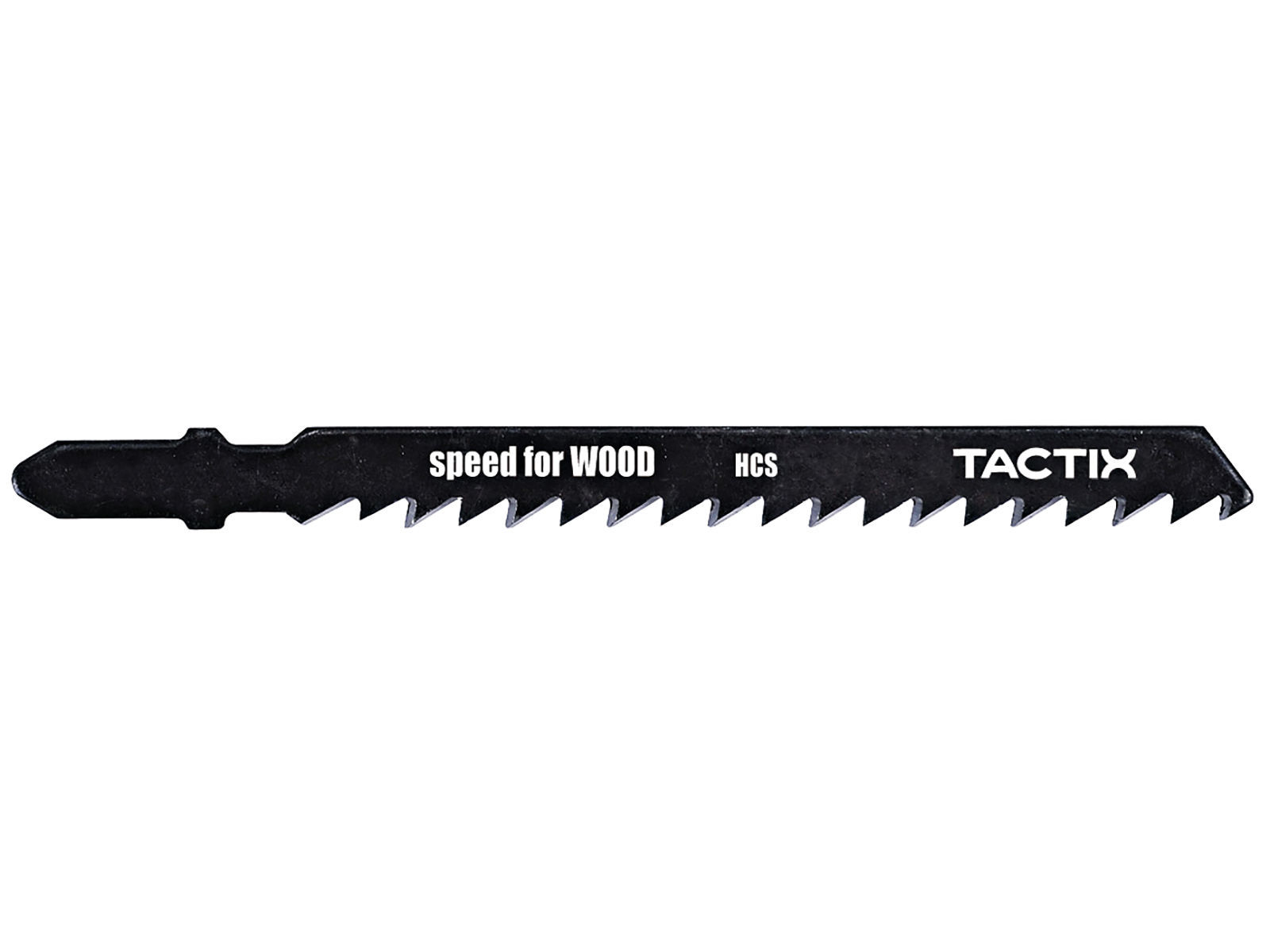 Speed for Wood stikksagblad lager raske rette kutt i tre. Skarpslipte tenner på siden gir raske resultater. Blad av høykarbonstål som er egnet for å kutte mykt treverk, og ikke-slipende trearbeidsmaterialer. Den store progressive tannavstanden (4,2 mm) gjør at bladet kutter i mange ulike trematerialer med en tykkelse på 5-50 mm. T-feste.