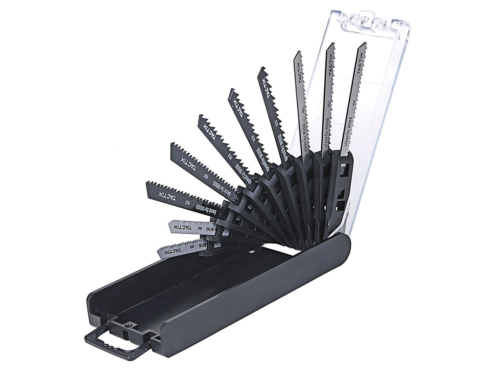 Stikksagbladsett med T-feste. Inneholder: 3 x #471500 (100mm - 10TPI), 2 x #471506 (100mm - 8TPI), 3 x #471512 (100mm - 6TPI), 1 x #471526 (75mm - 21TPI) og 1 x #471528 (75mm - 12TPI)