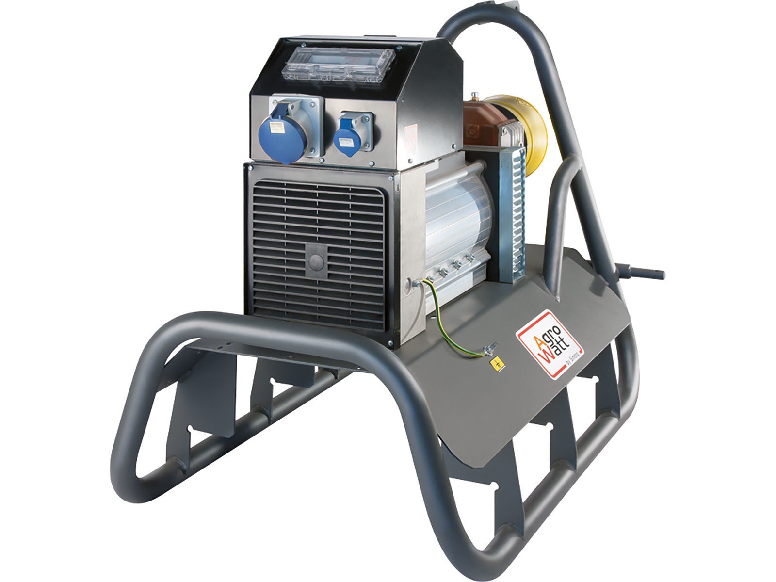 Traktordrevne strømaggregatet, med maks ytelse på hele 19,5 kW/25 kVA. Leveres i h.h.t. NVE's forskrifter. Traktordrevne strømaggregat er et rimelig alternativ til motordrevne strømaggregater. Leveres med voltmeter, frekvensmeter, jordfeilbryter og over-/underspenningsvern. Anbefalt traktorstørrelse min. (ca.) 48 HK.