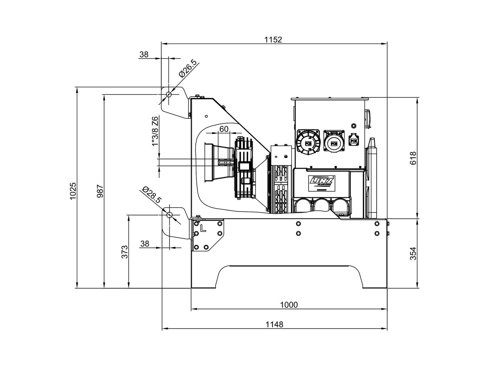 Traktordrevet strømaggregat, med maks ytelse på hele 42 kVA (31kW). Aggregatet kobles til traktorens kraftuttak med kraftoverføringsaksel (medfølger ikke), og etter å ha stilt inn rett turtall på kraftuttaket, vil aggregatets gearboks øke til rett hastighet, optimal drift har man når frekvensen er på 50 Hz. Aggregatet er utstyrt med 3-punkts feste, og kan lett transporteres. Anbefalt traktorstørrelse min. 51 HK.