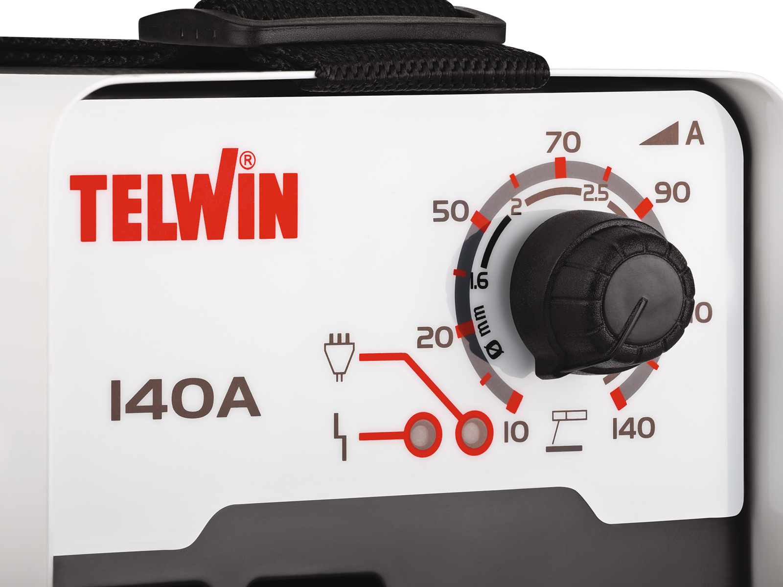Denne modellen leveres med: elektrodeholder med sveisekabel 1,8 m., jordingsklemme med sveisekabel 1,8 m. og slagghammer.
