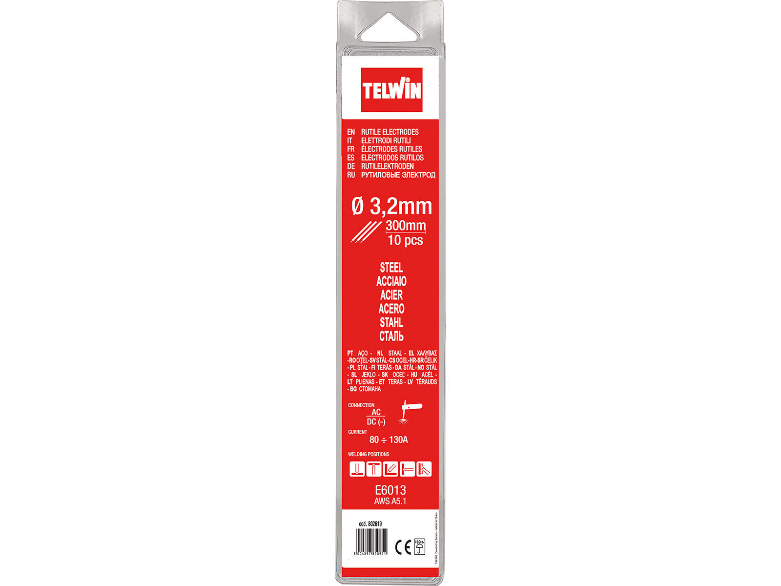 Stål sveiseelektroder i praktiske blisterpakninger. Det spesielle belegget på elektrodene gir den en utmerket overflate etter størkning og garanterer utmerket overflatebehandling av sveiseoperasjoner. De kan brukes i alle posisjoner og garanterer gode nivåer av stabilitet for buen; sveising kan utføres ved hjelp av direkte polaritet kontinuerlig strøm (negativ med elektrodeholderklemme) og i vekselstrøm med utmerkede mekaniske egenskaper i smeltesonen. De brukes til sveising av gjennomsnittlige tykkelser.