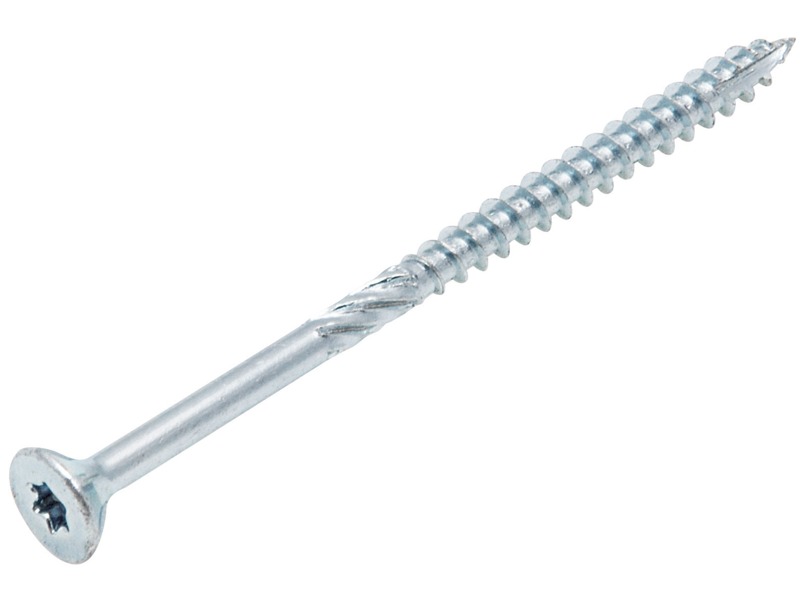 Skrue med cutter, som er beregnet for montering i tre. Produsert av herdet stål med elforsinket overflatebehandling. Rillespor under hodet sørger for at skruen forsenkes i underlaget. Skruen har Torx-spor.
