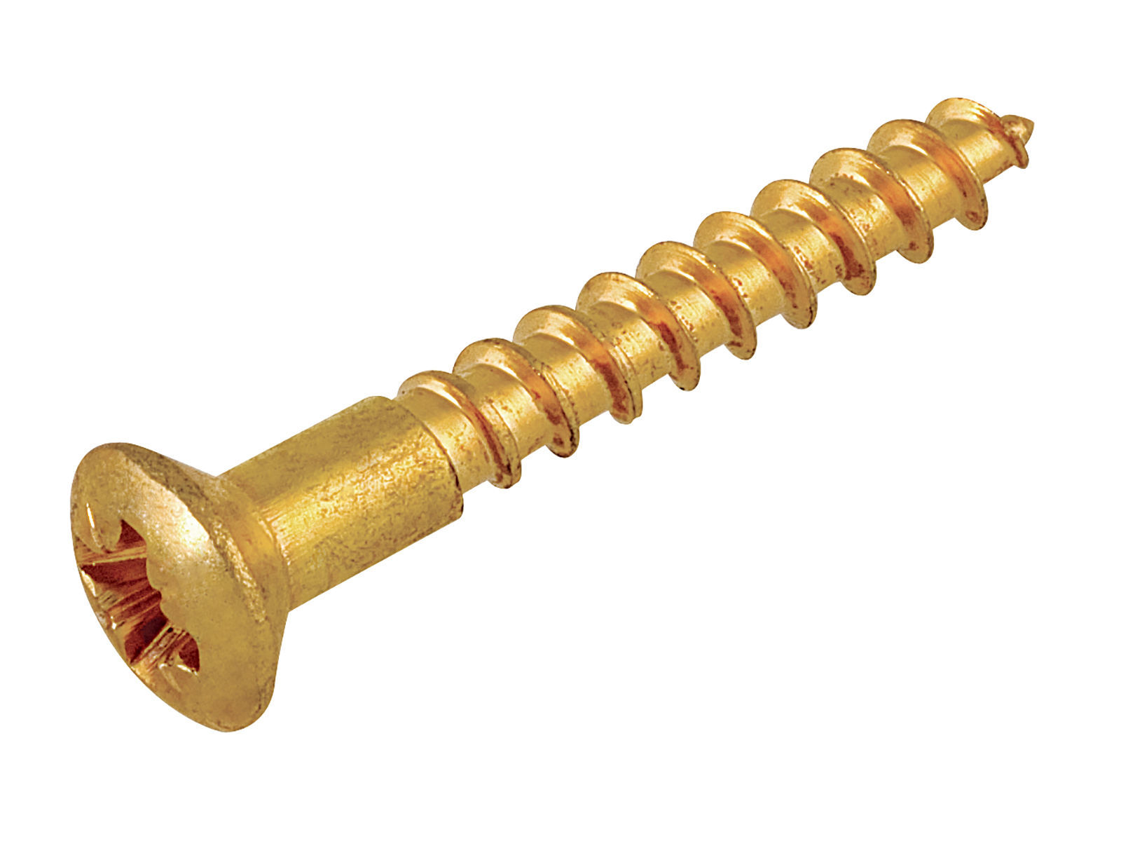 Skrue beregnet for montering i tre. Produsert av messing med formessiget overflatebehandling. Skruen har Pozidrive-spor.