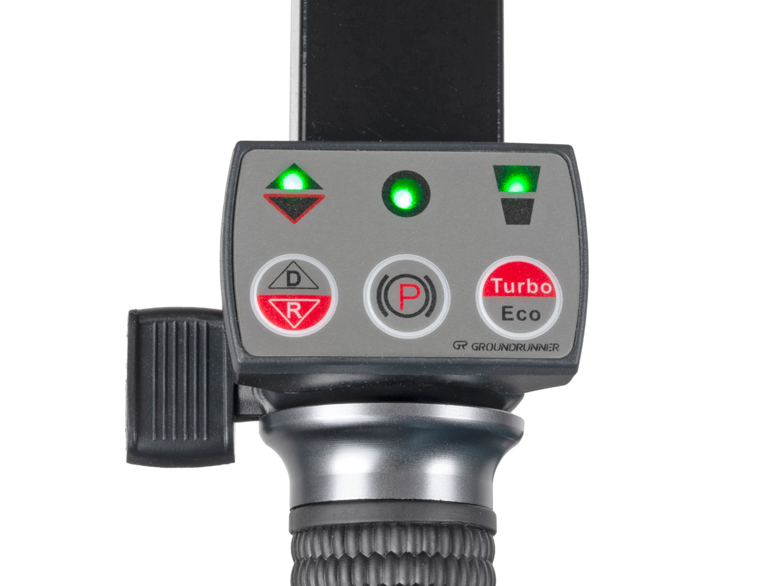 Med gasshendel og kontrollpanel styrer man enkelt kjøreretning, både fremover og bakover (revers).