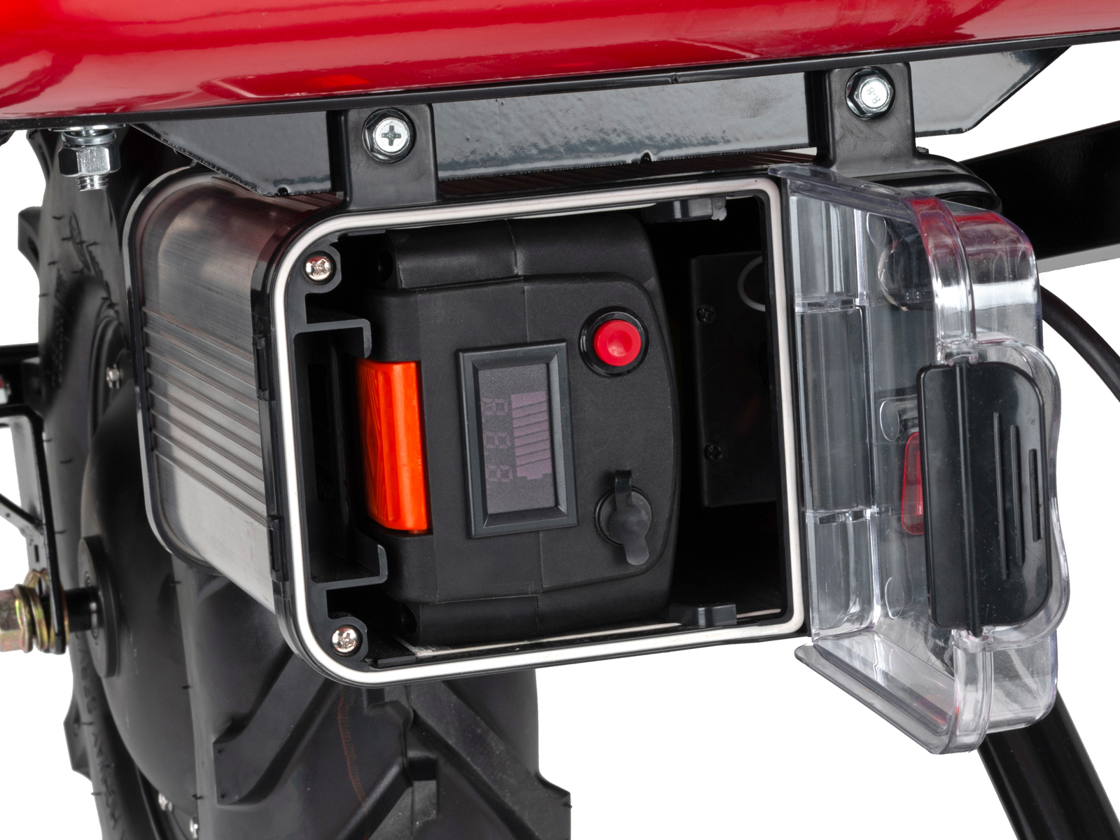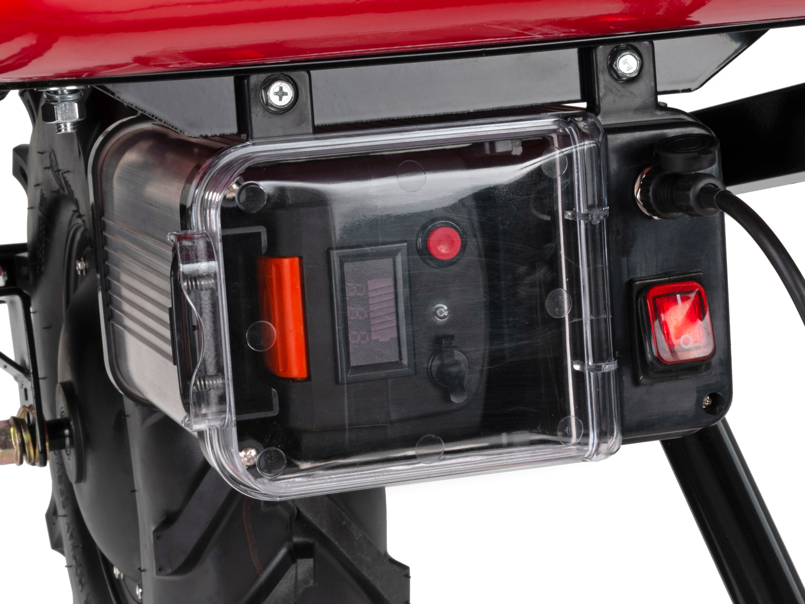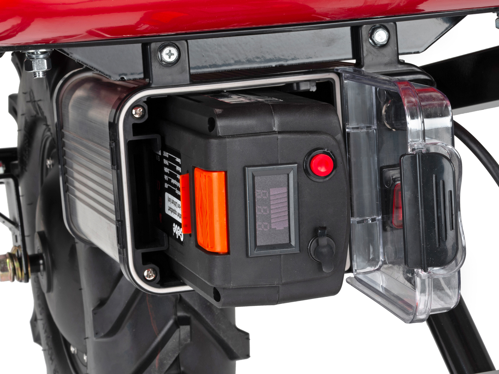 Denne modellen elektrisk, batteridrevet trillebår leveres med kraftig 280 W børsteløs el.motor som drivkilde.  Motoren drives av et 40V Li-Ionbatteri med ytelse på hele 6 Ah.  Batteri og batterilader medfølger.  Fulladet er driftstid fra 4-8 timer, avhengig av last og omgivelsestemperatur.