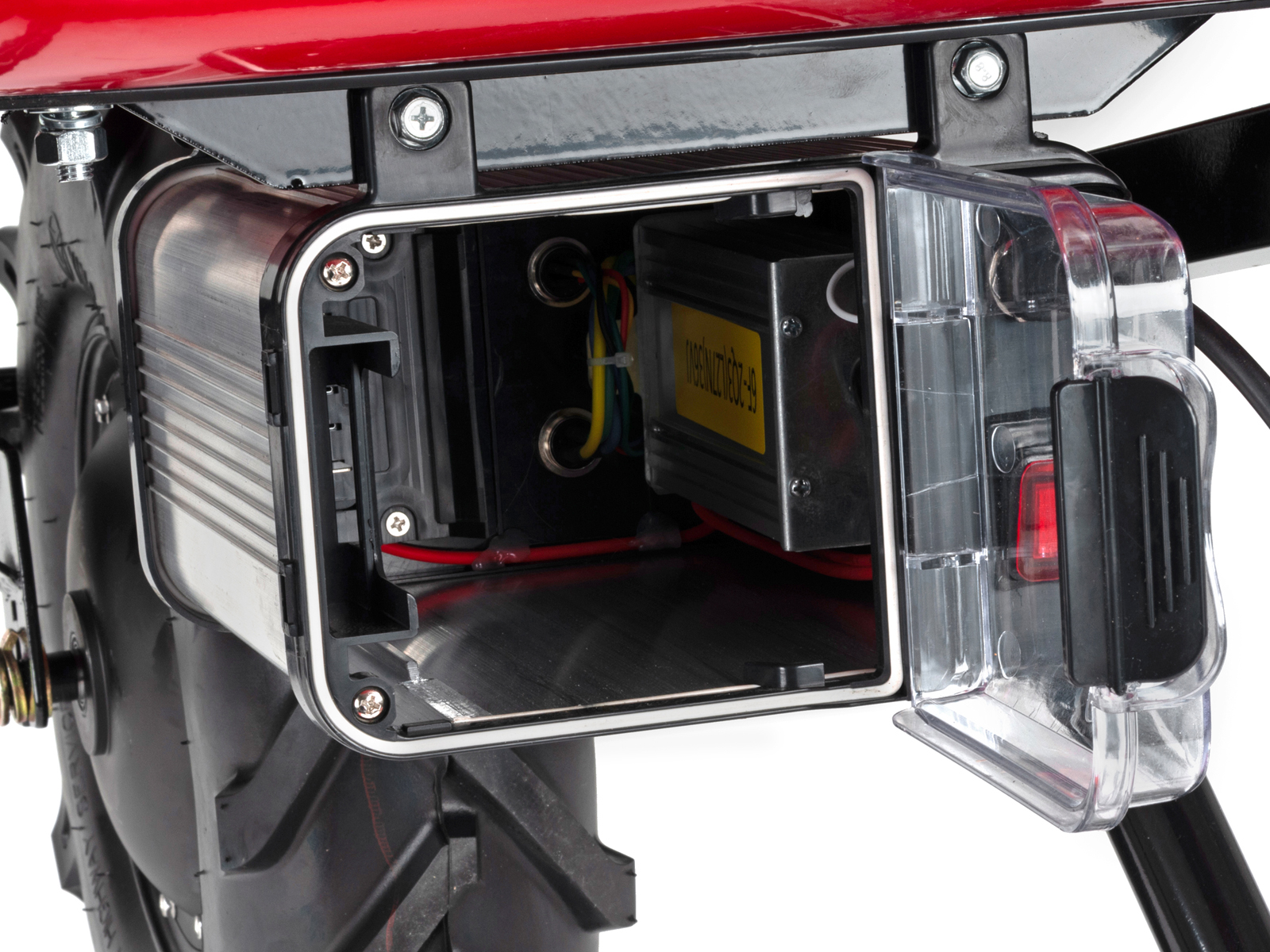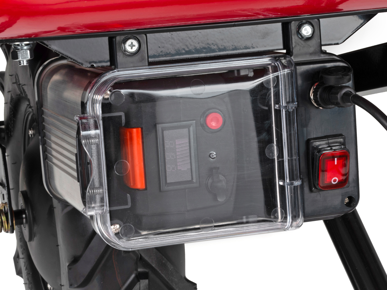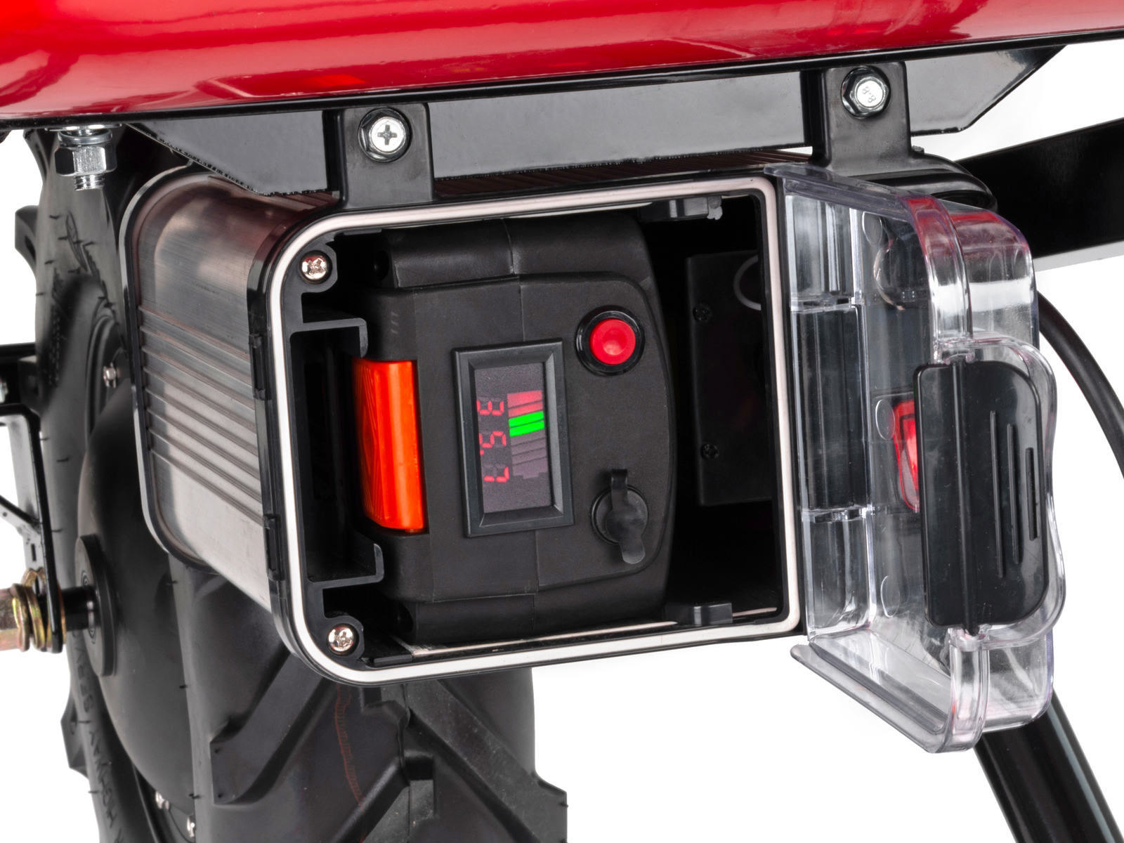 Denne modellen elektrisk, batteridrevet trillebår leveres med kraftig 280 W børsteløs el.motor som drivkilde.  Motoren drives av et 40V Li-Ionbatteri med ytelse på hele 6 Ah.  Batteri og batterilader medfølger.  Fulladet er driftstid fra 4-8 timer, avhengig av last og omgivelsestemperatur.