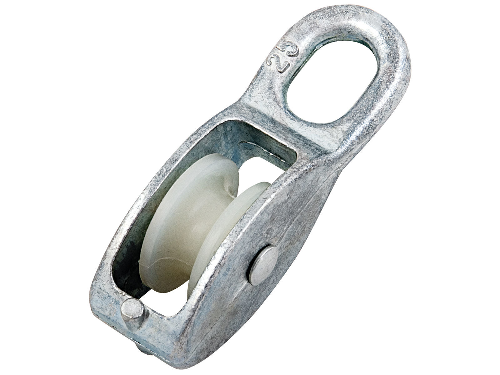 Trinse /blokk for tauverk. Produsert av støpstål/nylon med elforsinket overflatebehandling. Har plass til 7mm tau. Produktet har en bruddstyrke på 320 kg (estimert uten garantier).