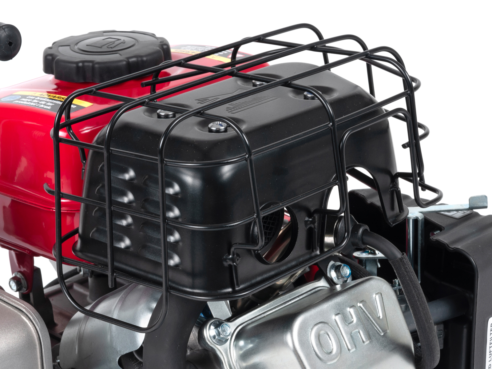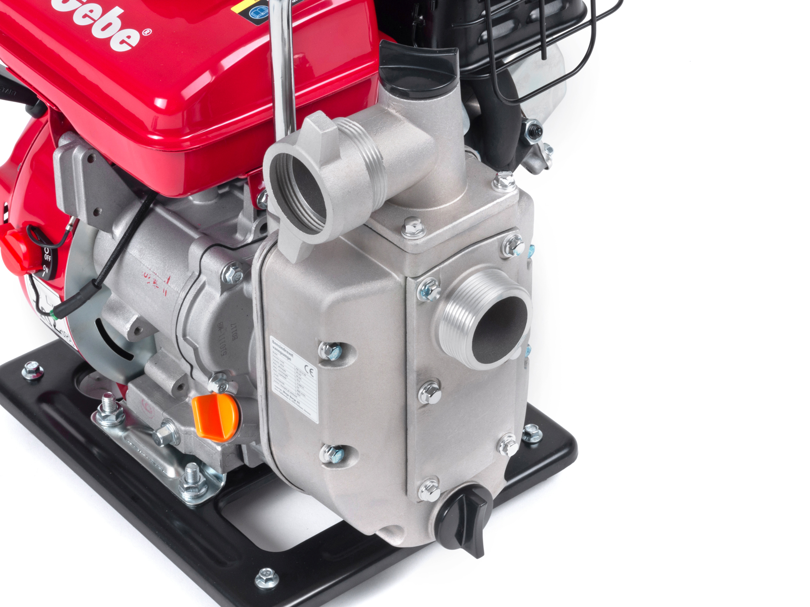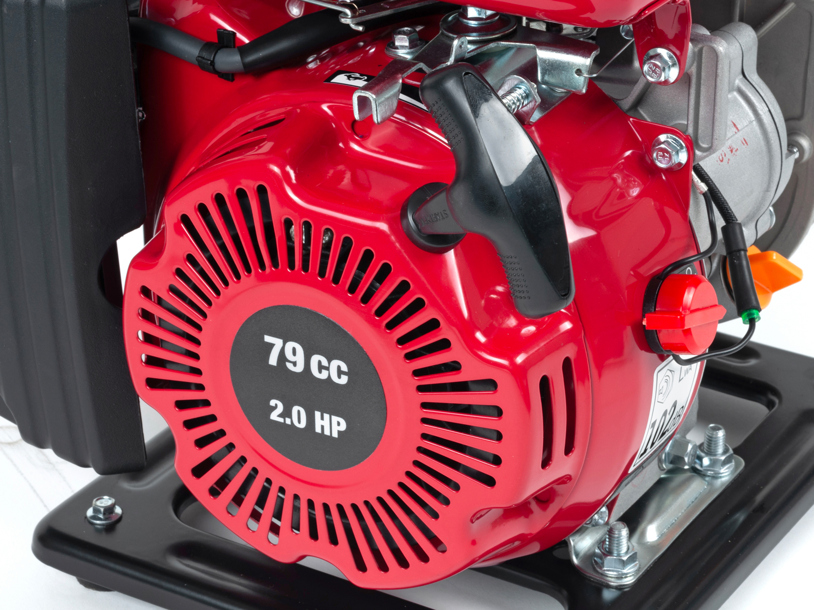 Lettstartet 4-takts bensinmotor (2,0HK) som tilfredsstiller Euro 5-standarden. Lavt bensinforbruk mot mange sammenlignbare modeller gir lavere kostnad og spart energi. Den nye bensintypen 95 oktan E10 kan trygt benyttes på denne modellen*. Motoren er utstyrt med oljevakt, som stanser motoren automatisk ved lavt oljenivå/oljetrykk. Motor/pumpe er montert på ramme med vibrasjonsdempere.