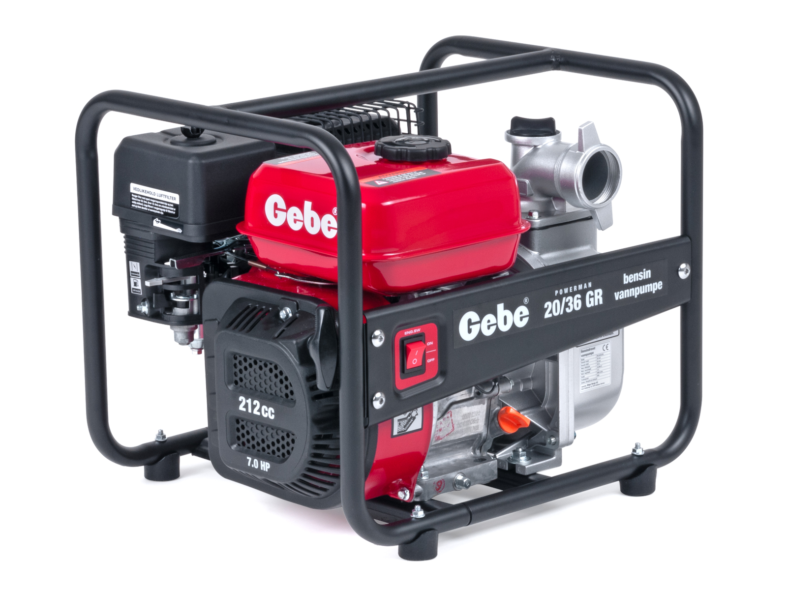Lettstartet 4-takts bensinmotor (5,5HK) som tilfredsstiller Euro 5-standarden. Lavt bensinforbruk mot mange sammenlignbare modeller gir lavere kostnad og spart energi. Den nye bensintypen 95 oktan E10 kan trygt benyttes på denne modellen*. Motoren er utstyrt med oljevakt, som stanser motoren automatisk ved lavt oljenivå/oljetrykk. Motor/pumpe er montert på helramme med vibrasjonsdempere.