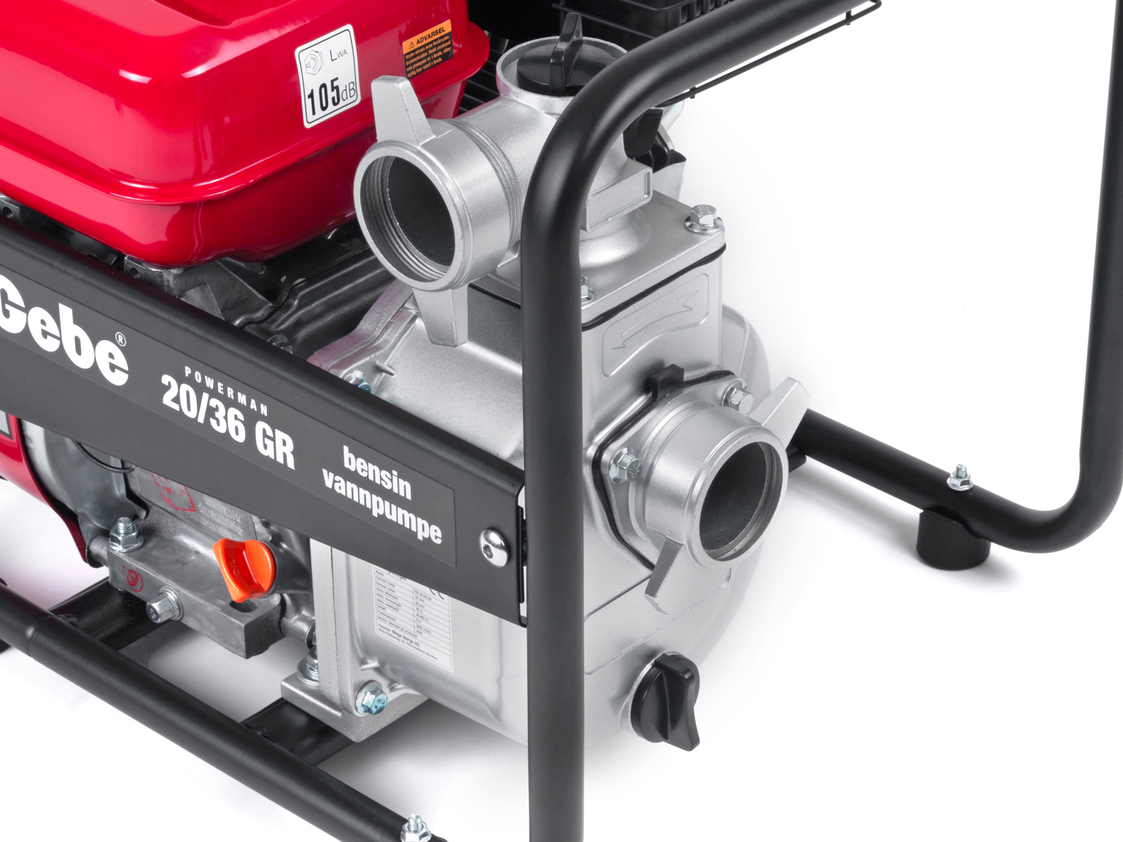 - Kompakt vannpumpe i helramme med vibrasjonsdempere – lav vekt på bare 23 kg