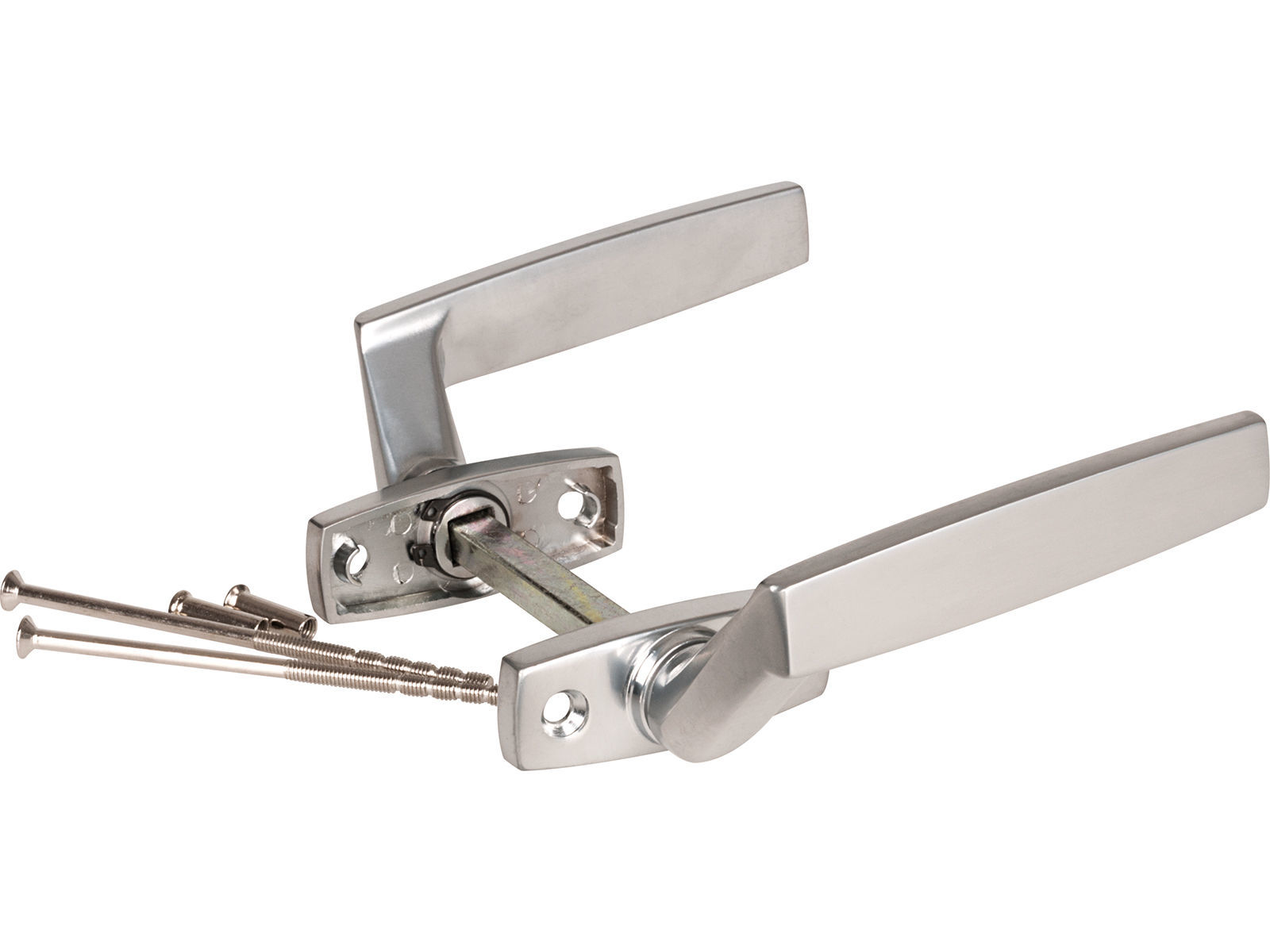Komplett sett med ytre og indre vrider, pinne og skruer. Matt-krom utførelse.