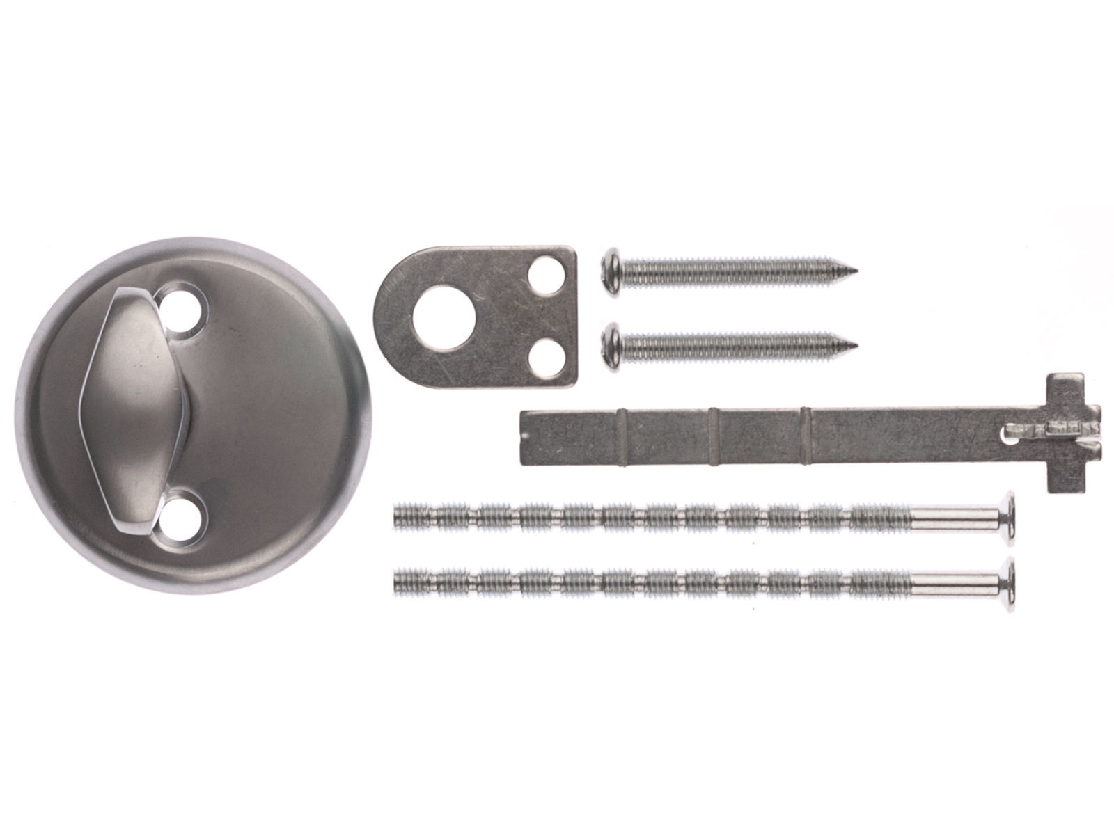Vriderknappsett med medbringer for ovale sylindere. Krom matt utførelse. Kappbar pinne med lengde 63 mm, skrue med spiss 5x28 mm, kappbar skiltskrue 5x90 mm. Passer i kombinasjon med sylinder 75537.