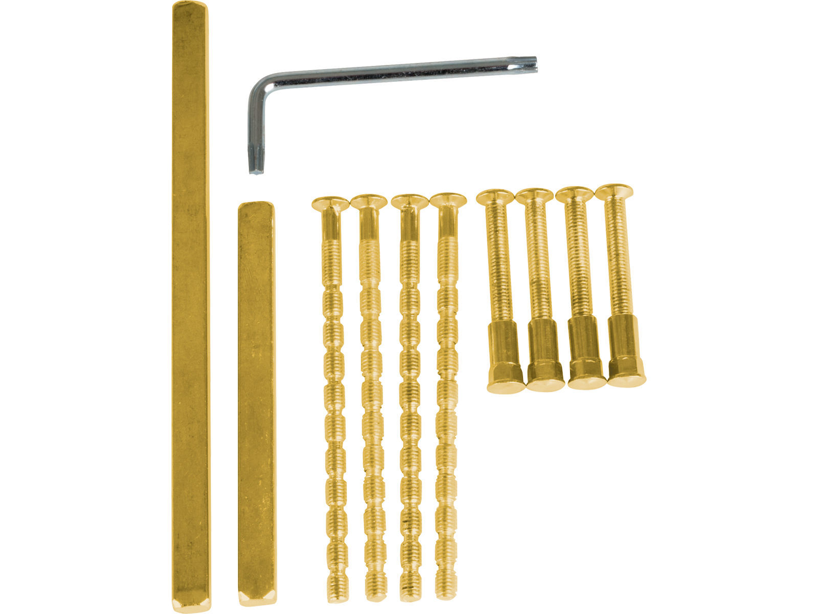 Vridertilbehør for innerdører og ytterdører. Messing utførelse. Passer til dørtykkelse 35-80 mm. Komplett sett inneholder: 4 stk skruer 5x40 mm, 4 stk skruer 5x90 mm, 4 stk muttere 5x15 mm, 2 stk pinner 8x98 mm og 8x140 mm og Torx 20 L-nøkkel. Settet passer til alle seriene.