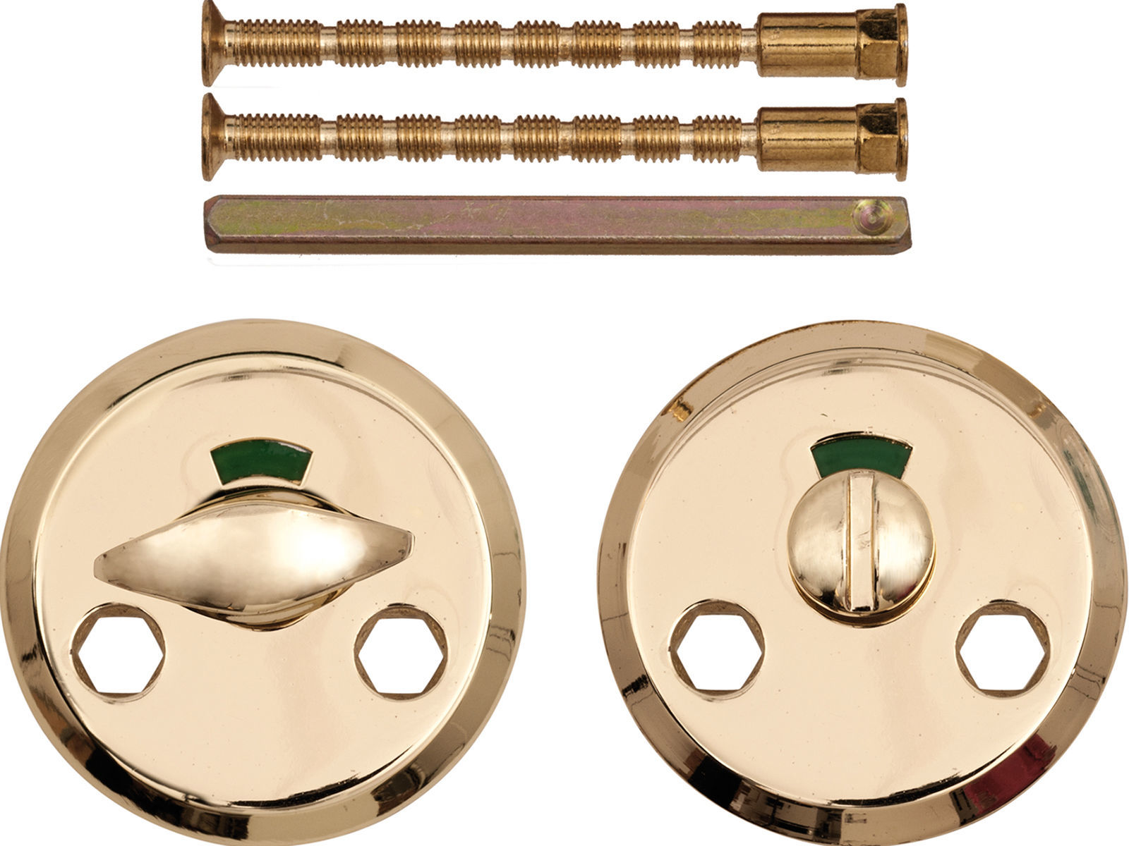 WC-garnityr av zink/alloy for innerdører. Polert messing utførelse. Passer til dørtykkelse 35-60 mm. Leveres komplett med skilt type R0K3, samt skruer og tilbehør. En del av BASIC-serien.